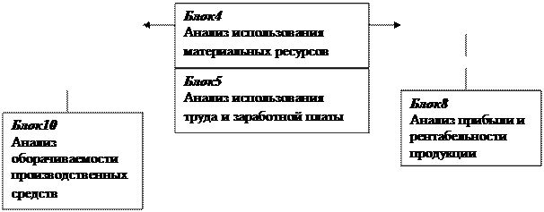 Сопоставление показателей объема продукции и величины авансированных основных и оборотных производственных фондов характеризует воспроизводство и оборачиваемость производственных фондов, то есть фондоотдачу основных производственных фондов и оборачиваемость оборотных средств (блок 10).