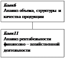 Сопоставление показателей объема продукции и ее себестоимости характеризует величину прибыли и рентабельности продукции (блок 8), а также затраты на один рубль продукции.
