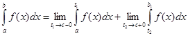 (где f(c) =¥, a<c<b) называется сходящимся, если существуют оба предела в правой части равенства, и расходящимся, если не существует хотя бы один из них.