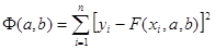 Рассмотрим приближающую функцию в виде F(x,a,b) = ax+b.