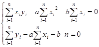 Задача сводится к отысканию минимума функции Ф(a,b). Используем необходимое условие экстремума: