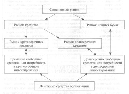 Взаимосвязь финансового рынка и денежных средств организаций схематически можно представить следующим образом (рис.11).