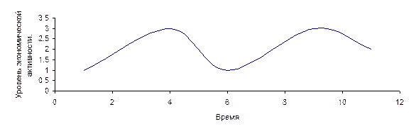 Экономический цикл длиться 8 – 10, а иногда и меньше лет. Графически его развитие выглядит следующим образом.