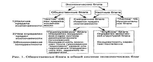Некоторые блага в зависимости от обстоятельств могут быть как общественными, так и частными (смешанные блага). Например, фейерверк – благо общественное, если оно производится в городе с большим количеством жителей. Но если вы любуетесь огненными шарами в частном увеселительном парке (Диснейленде), фейерверк – скорее частное благо, потому что его посетители заплатили за входной билет. Для того чтобы определить общественное благо, необходимо оценить количество потребителей, извлекающих выгоду из пользования благом, и возможность помешать им. Проблема бесплатного использования возникает, когда число пользователей велико, а исключение хотя бы одного из них невозможно. Если маяк приносит пользу капитанам многих кораблей, это общественное благо, если выгоду извлекает, прежде всего, владелец порта, речь идет скорее о частном благе. Опыт постиндустриального общества показывает, что рынок в состоянии выявить и удовлетворить спрос лишь на частные блага. Создания и реализация общественных благ является задачей государства. Однако общественные блага не являются однородными. Они выступают как чисто и частично общественные блага. Производство чисто общественных благ полностью возлагается на государство (охрана общественного порядка, например). В то же время создание частично общественных благ (образование, здравоохранение, социальное страхование) может осуществляться как государством, так и частным сектором экономики. При этом государство гарантирует лишь такой уровень воспроизводства частично общественных благ, который в данный момент может быть обеспечен ресурсами государственного бюджета, определяемого в свою очередь развитием производства.