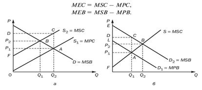 Рис. 7. Внешние эффекты: а — отрицательный; б — положительный