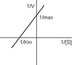 Удобнее использовать график, представляющий прямую линию. Такой график предложен Лайнуивером – Берком (график двойных обратных величин), который соответствует обратному уравнению Михаэлиса - Ментен