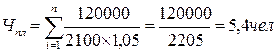 Пример расчета: n=1; Т т.н.i = 120000чел-час; Ф р.в.i = 2100 час; I н.т.i = 1,05