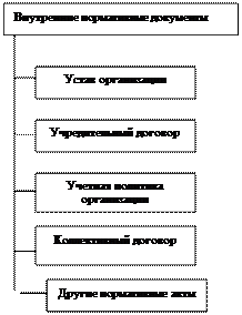 Правовое обеспечение создания и функционирования коммерческой организации является основой ее взаимодействия с государством, юридическими и физическими лицами. Совокупность нормативной базы может быть представлена в виде двух блоков, а именно внешними и внутренними нормативными документами (рис.3).