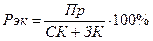 Рентабельность продукции (коэффициент окупаемости затрат) исчисляется путем отношения прибыли от продаж (Прп) к сумме себестоимости реализованной продукции (Сс):