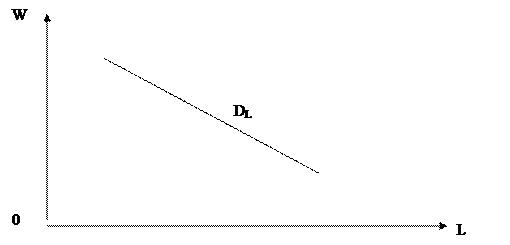 Объем спроса на труд – находится в обратной зависимости от величины W и выражается в виде кривой спроса на труд.