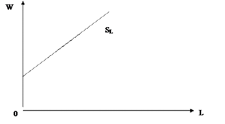 Кривая предложения труда SL показывает, что при повышении з/п возрастает предложение труда (и наоборот).