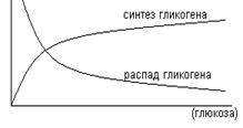 Синтез и распад гликогена подвержены авторегуляции при изменении концентрации глюкозы по приведенной схеме.