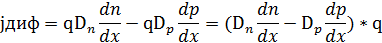 Результирующая плотность диффузионного тока в полупроводнике будет: