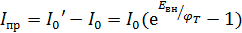 При прямом напряжении на переходе ток диффузии основных носителей заряда I0 = I диф увеличивается в exp (Евн/φТ) раз за счет снижения потенциального барьера и является функцией приложенного напряжения: