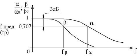- граничные частоты в схеме с ОЭ и ОБ, соответственно.