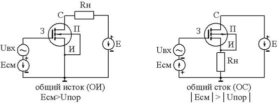 Схемы включения МОП-транзисторов с индуцированным каналом.