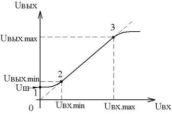 На графике т.1 соответствует напряжению шумов (UШ) на выходе (измеряется при Uвх=0).