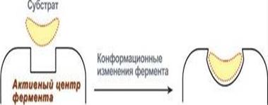 2. Теория Кошланда (модель "индуцированного соответствия", "рука-перчатка") – подразумевает гибкость активного центра. Присоединение субстрата к якорному участку фермента вызывает изменение конфигурации каталитического центра таким образом, чтобы его форма соответствовала форме субстрата.