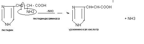 В процесс внутримолекулярного дезаминирования чаще других аминокислот вступает гистидин, серин, треонин, цистеин. Например, из гистидина происходит выделение NН3 за счёт внутримолекулярной перестройки с образованием уроканиновой кислоты: