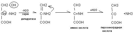 Серин в результате внутримолекулярного дезаминирования переходит в пировиноградную кислоту