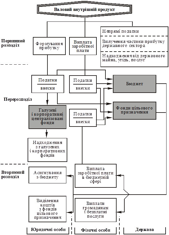 ¾ забезпечують розподіл ВВП і фінансові потреби юридичних і фізичних осіб та держави;