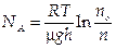 3. Так как непосредственное наблюдение концентрации молекул невозможно, Ж. Перрен привел определение числа Авогадро, используя явление броуновского движения. Мельчайшие (размером в доли мкм) частицы в жидкости ведут себя как молекулы тяжелого идеального газа. Фотографируя под микроскопом слои эмульсии, содержащие такие частицы он нашел их распределение по высоте, т.е. концентрацию на различных высотах. Масса частиц, имевших шарообразную форму, с учетом закона Архимеда равна
