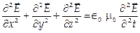 9. Волновые уравнения для электромагнитной волны при распространении ее в области пространства, не содержащей зарядов и токов: