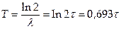 Величина t = 1/ λ называется средним временем жизни ядра. Время, за которое количество ядер уменьшится в 2 раза, называется периодом полураспада Т.