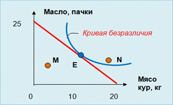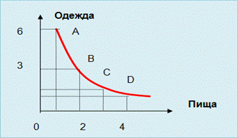 Кривая безразличия – это изображение на плоскости множества наборов товаров, имеющих одинаковую полезность. При выборе набора из такого множества потребителю безразлично, какой из наборов взять.