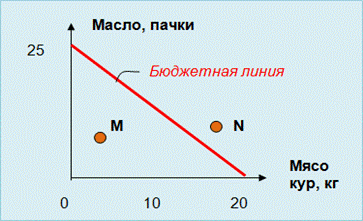 Точка М на графике показывает, что бюджет расходуется не полностью.