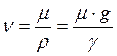 Вязкость кинематическая - представляющая собой отношение коэффициента динамической вязкости к плотности жидкости: