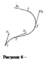 Можно выбрать точки 1, 2, 3, 4... и провести через них плавную кривую, к которой векторы скоростей будут всюду касательны.