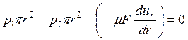 Где ur – скорость движения жидкости вдоль оси цилиндра на расстоянии r от оси;