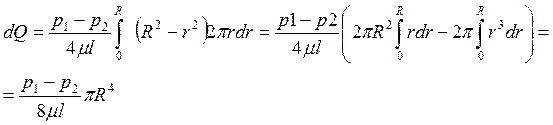 Интегрируя последнее уравнение, получим расход жидкости через трубу: