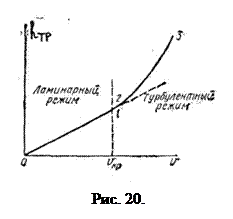 (рис. 20). График показывает, что при скорости меньше некоторого предела потери напора прямо пропорциональны первой степени скорости (на графике участок 0-1).