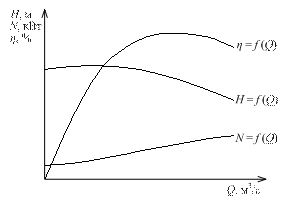 Основной характеристикой считается зависимость напораот подачи насоса H = f(Q) при постоянной частоте вращения.