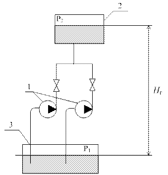 1 –центробежные насосы; 2 – приемный резервуар; 3 – исходный резервуар