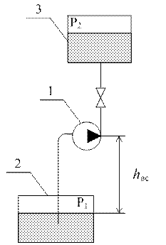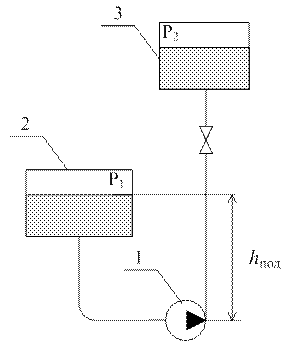 1 – насос; 2 – исходный резервуар; 3 – приемный резервуар