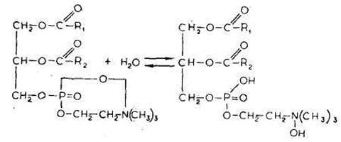 Химическая реакция гидратации фосфолипидов может быть представлена на примере взаимодействия лецитина с водой.