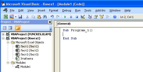 Чтобы сохранить созданную программу, нажимаем CTRL+S или в закладке ленты инструментов "Файл" выбираем пункт "Сохранить" или "Сохранить как". Попытка сохранить документ Excel в файле с типом "Книга Excel", предлагаемым по умолчанию, приведёт к сбою: Excel выдаст сообщение: "Следующие компоненты невозможно сохранить в книге без поддержки макросов: Проект VB".