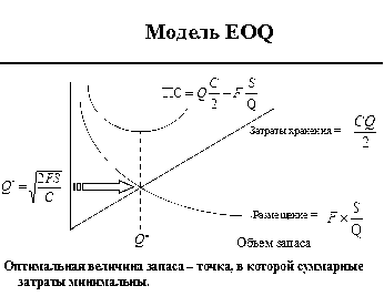 Расчетный механизм модели EOQ основан на минимизации совокупных операционных затрат по закупке и хранению запасов на предприятии.