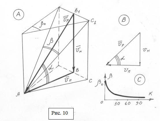 ПРИМЕР: Если VH =20, VП = 0,2; β0 = 15°, то К =100, а β = 0° 05’.