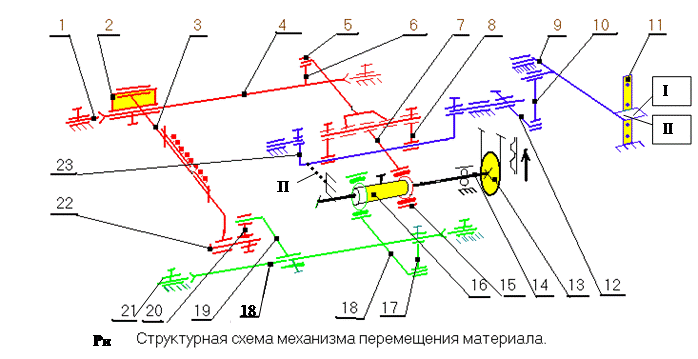 Технологическое назначение механизма – переместить материал своевременно на заданную величину в заданном направлении.