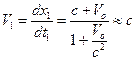 Если один объект движется в первой системе отсчета со скоростью равной скорости света, то и в другой системе отсчета его скорость будет равна скорости света. Уравнения Максвелла не изменяются при переходе из одной системы отсчета в другую.