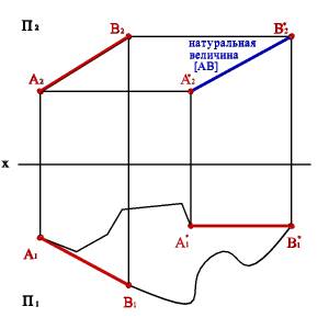 Рис. 33. Определение натуральной величины отрезка методом плоскопараллельного перемещения