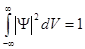 Так как |Ψ|2 dV определяется как вероятность, необходимо волновую функцию Ψ нормировать так, чтобы вероятность достоверного события обращалась в единицу, если за объем V принять бесконечный объем всего пространства. Это означает, что при данном условии частица должна находиться где-то в пространстве. Следовательно, условие нормировки вероятностей