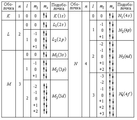 Напомним, что состояние электрона в атоме однозначно определяется набором четырех квантовых чисел: