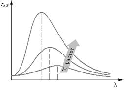 Закон Стефана — Больцмана, определяя зависимость Re от температуры, не дает ответа относительно спектрального состава излучения черного тела. Из экспериментальных кривых зависимости функции rλT