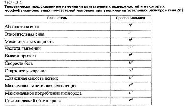 Тотальные размеры тела у людей существенно различны. В одном и том же виде спорта (например, в борьбе или тяжелой атлетике) можно встретить спортсменов с весом тела менее 50 и свыше 150 кг. Двигательные возможности этих спортсменов будут разными.