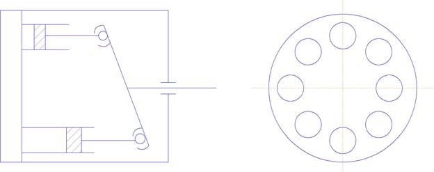 Под копотом автомобиля достаточно места, поэтому используется аксиально-поршневой компрессор.